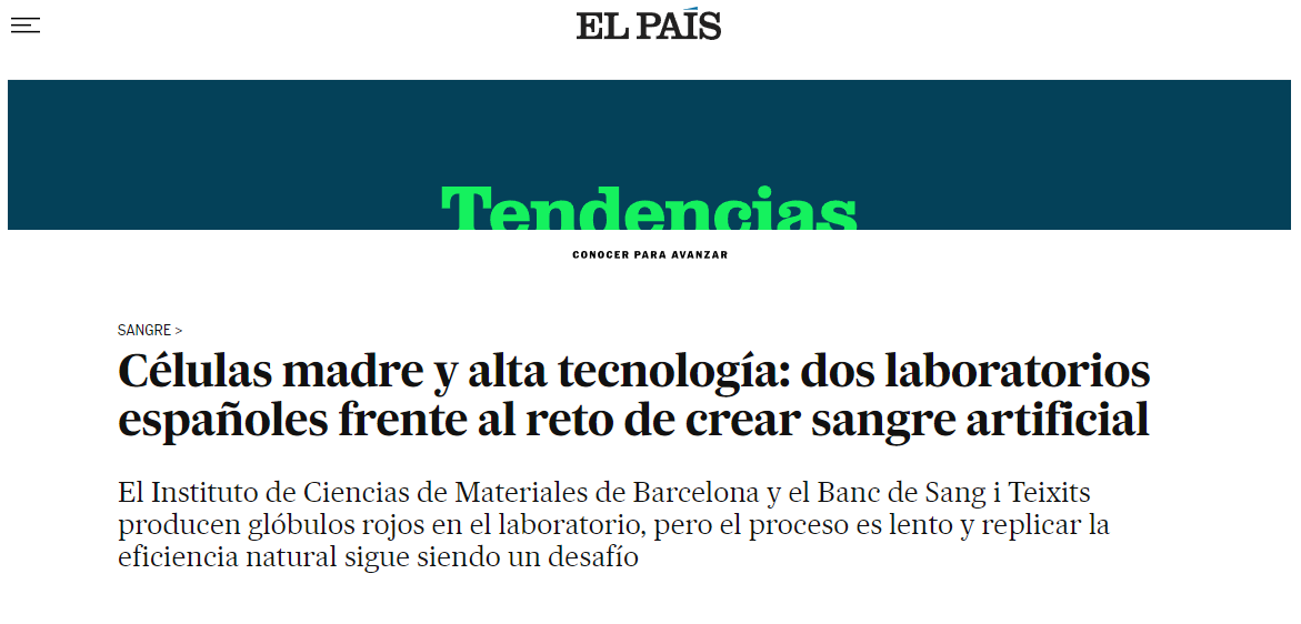 Spotted in the influential Spanish newspaper El Pais: an interview with Arantzazu Gonzalez-Campo from Functional Nanomaterials and Surfaces (ICMAB, Barcelona). She discusses SynEry in the context of one of today’s major challenges, ensuring and maintaining a safe supply of blood products world wide.